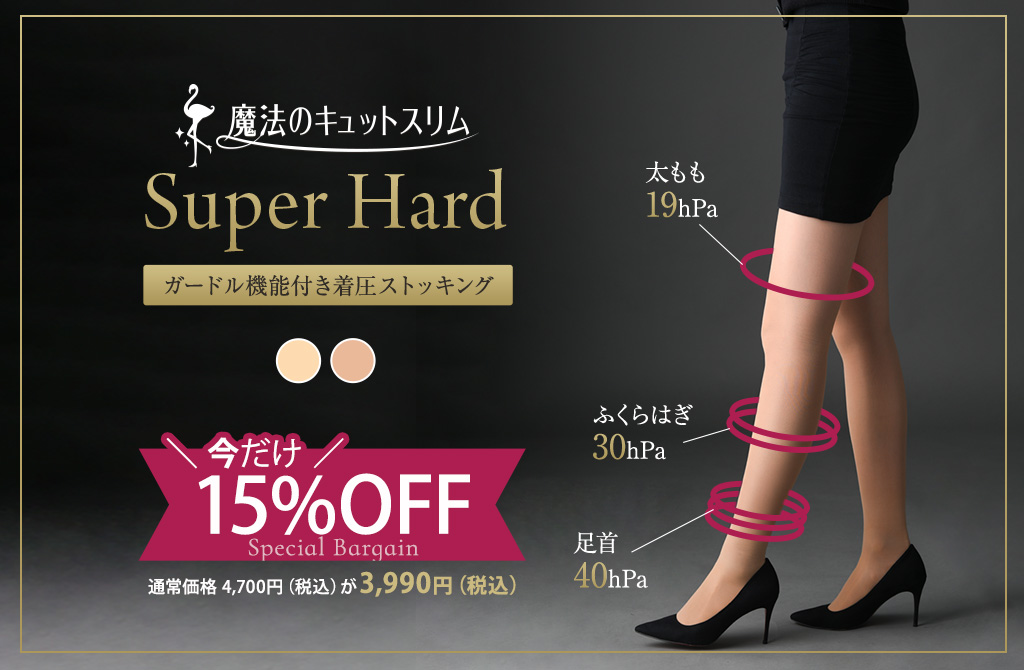 2005年に誕生した「魔法のキュットスリム」は 日本製にこだわった高機能な着圧レッグウェアブランド。 最初に着圧ストッキングを発売して以来 シリーズ累計販売枚数200万枚突破と たくさんの女性にご支持いただいております。 大人女性のお悩みである 「パンパン脚」「ぽっこりお腹」「下垂ヒップ」などに 簡単履くだけアプローチ。 医療用編機だからこそ可能な 窮屈感のない心地良い履き心地でお悩みを解決します。