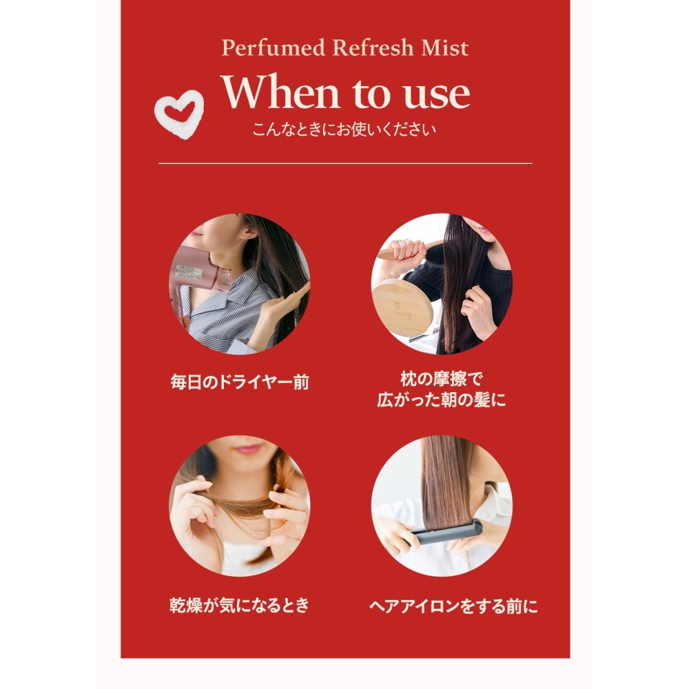 摩擦・乾燥から髪を守り、静電気も防止。 熱を味方にツヤを引き出すヒートプロテクト機能で、ドライヤーやアイロン前にも最適です。
