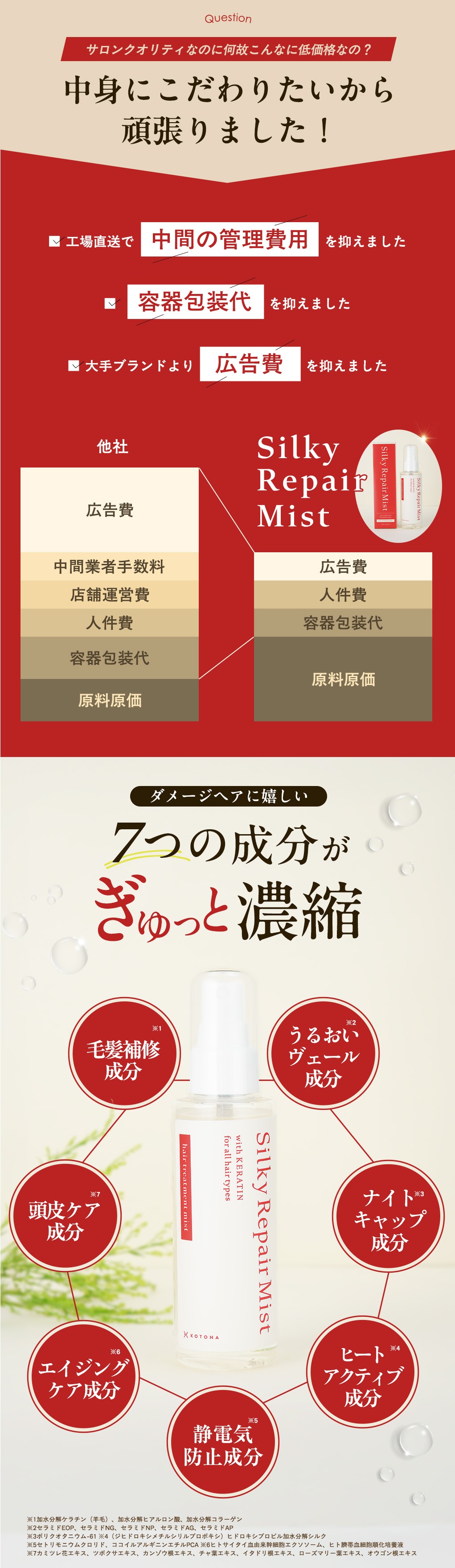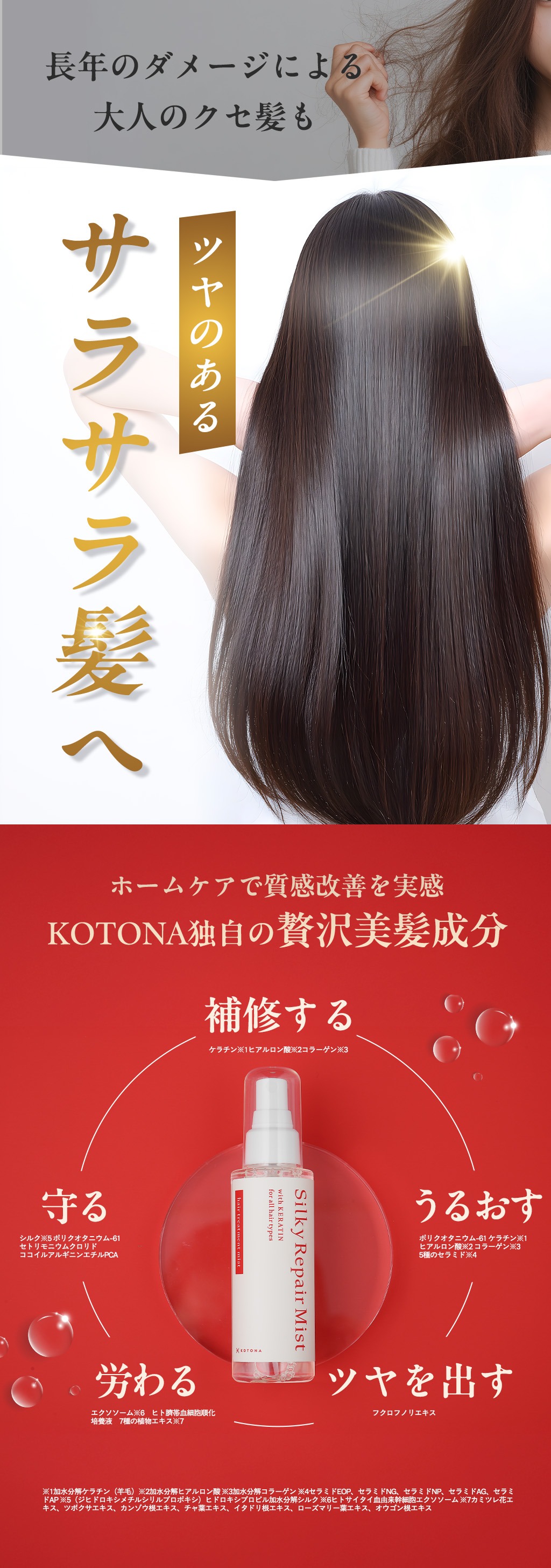 KOTONA「Silky Repair Mist」で、あなた史上最高の美髪体験を。